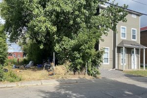 有人躺在前门廊,有人坐在门口,有人靠墙而立,院子里搭着多个帐篷