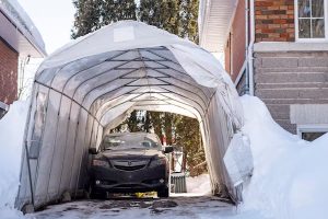 随着春季回暖,为汽车搭建的临时雪棚已到了