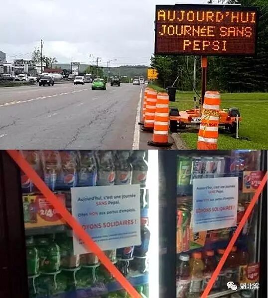 位于蒙特利尔西北约200公里处的小镇Mont-Laurier上的百事可乐的配给中心于5月份关闭,使当地约40人失去了工作。这一失业比例重创了这个人口不到1万4千人的小镇。当地居民极端愤怒,几乎所有商家都开始抵制百事的各种产品。抵制活动得到了镇政府的支持和鼓励。约80个商家上周参加了为期两天的抵制运动,包括在自动售货机上贴上胶带,防止人们购买,一些酒吧也改用可口可乐来代替百事可乐。镇政府官员曾在上周与百事公司代表会面,讨论重开配给中心,但未达成协议。今天小镇将提出解决方案,以决定是否对百事可乐展开全面的抵制行动。