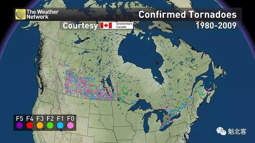 加拿大境内的龙卷风,多集中在中部的草原三省,以及东部圣劳伦斯河流域。