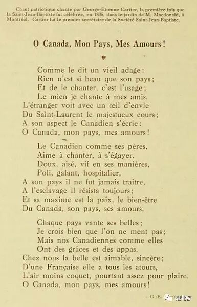 Saint-Jean-Baptiste协会之后找到作曲家Calixa Lavallée为该诗谱曲,这部伟大的作品在一个世纪以后的1980年,正式成为加拿大国歌。而同曲英文版国歌《O Canada》的歌词直到1906年才被创作出来。