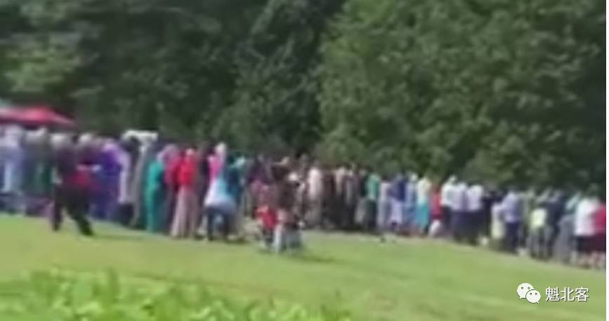 视频是一位游客拍的,很短,画面很晃不清晰:在位于蒙特利尔南部60多公里的Safari动物园,一批穆斯林在公共绿地上集体祈祷,并使用扩音器。引起一些游客的侧目。