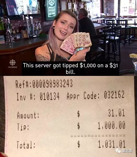22岁的隆巴多在多伦多Etobicoke区的一家餐馆上班。周日凌晨1点左右,两名男子进来点餐并不断邀她过去聊天。隆巴多回忆说,他们有点儿怪,但还算友善风趣。等其他客人走后,她便接受了邀请。两人要她回答问题,并说一定要诚实。一个问题关于梦想。隆巴多说自己热爱音乐,希望有天能把这个爱好变成职业。当他们问她最喜欢布鲁斯·斯普林斯汀(美国老牌大歌星)的哪一首歌时,她直言她一首也没听过。两人似乎对这个回答很满意。最后他们竟在31加元的餐费账单上加上了1000加元的小费!隆巴多当时就傻了,两人却相当认真地说,他们常这样做,就是为了给那些有梦想且诚实的人惊喜与奖励。隆巴多表示,她又多了一个梦想:希望能有一天可以用同样的方法去帮助别人。