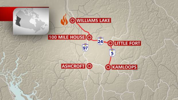 据CBC报道,因为风向的变化,Cariboo, 100 Miles House, William Lake区域内上千居民在上个周末被紧急疏散。