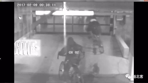 伽马公寓大楼监控视频截图:盗贼偷走自行车瞬间