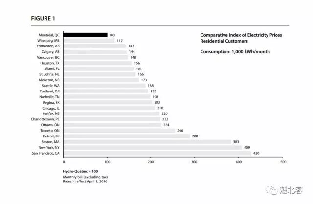换句话说,多伦多电价是蒙特利尔的2.46倍,而旧金山是蒙特利尔的4.3倍。