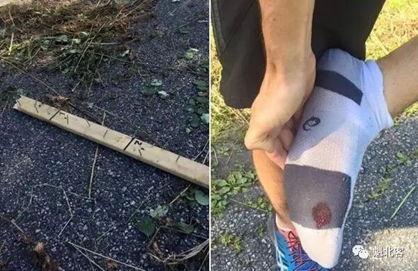 两男子近日在蒙特利尔南岸Longueuil市户外跑步时被钉子扎伤了脚。上周日9点左右,两男子在Marie-Victorin公园附近的自行车道上跑步,途中他们穿过了一段被树叶覆盖的路面, 一男子突感脚底剧痛,两人发现树叶下面竟有一块长长的木板,上面钉有20多枚钉子,钉尖向上。随后他们在附近的路边又发现了第二块。两人当即报警。Longueuil警方表示,已派员到现场勘查,他们将在整个夏季加强对自行车道的巡逻。警方发言人表示,事发地靠近一个建筑工地,但目前没有任何证据表明木板是被人故意放置在那里的。