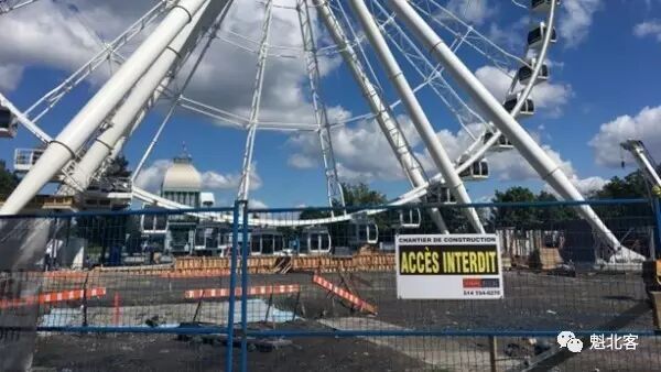蒙特利尔老港摩天轮项目于今年4月被公布,原定6月底完工,但由于今年雨水过多,加之5月的工人罢工,官方只得将摩天轮开幕时间一推再推,6月底推至7月底,而今7月底又推到了8月底。据悉,摩天轮竖立在Ile-Bonsecours岛上,由荷兰公司建造,造价2700万元。主体部分已完工。60米高的摩天轮上设有42个座舱,每圈15分钟,票价预计每人$25。乘此轮登高远眺蒙村风景的确角度与众不同,而此轮上安装的1800盏灯也会让其本身成为蒙村夜晚一道美丽的风景。但众多市民对此轮没完没了的延期表示失望。