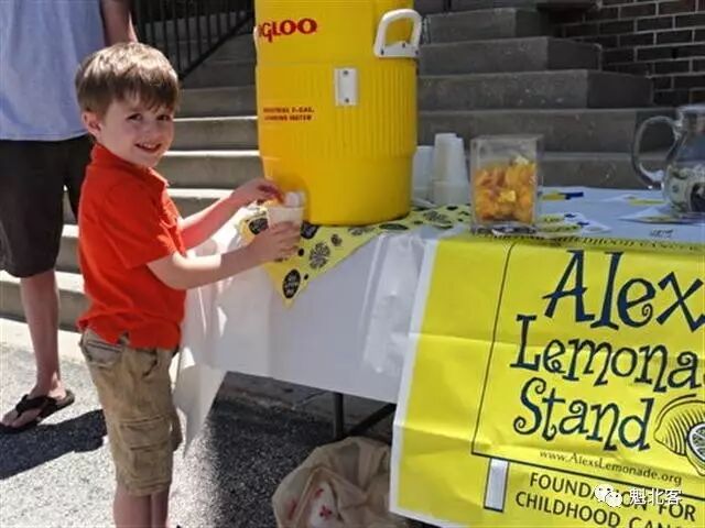 那个周末,美加两国大小城镇间突然同时冒出了2500多个柠檬水摊位,这些由美加两国成千上万个孩子、家庭、企业机构设立的摊位上,都张贴着明黄色的宣传标志–Alex’s Lemonade Stand。