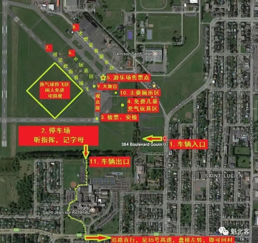 如果够闲,你也可试试官方提供的地址:5 Chemin de l’Aéroport, Saint-Jean-sur-Richelieu, QC J3B 7B5, Canada。到了GPS目的地后,建议您睁大眼睛,仔细看路边指引,使劲走,同样也能找到。