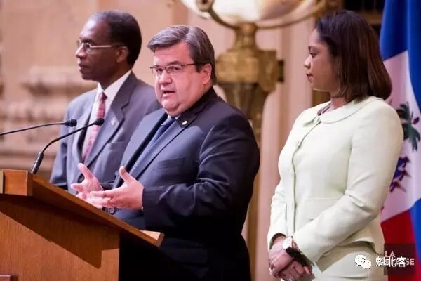 蒙特利尔市长丹尼斯·科戴尔与两位海地政府官员