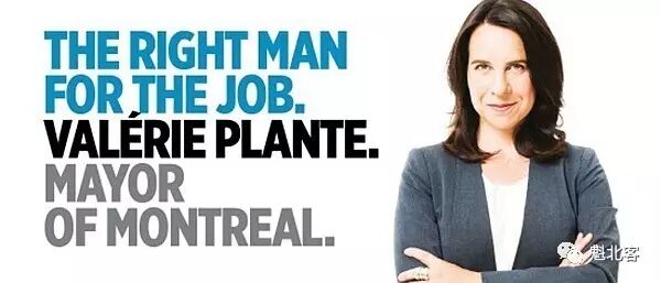 蒙特利尔市反对党Projet Montreal也没闲着,他们为11月5日的市政选举推出了竞选新口号:The Right Man for the Job(市长的最佳人选)!海报上的女性正是现任市长丹尼斯·科戴尔的最大的竞争对手,蒙村反对党Projet Montréal的党魁Valérie Plante。她表示,新口号代表了自己,很好的诠释了该党的理念。口号中提及的”The Right Man“暗示现在的政治都被男人操纵,女性在政治中面临挑战,希望自己可以改变这一切,成为蒙特利尔的首任女市长。同时,Plante表示,科戴尔昨日的发言无非是在画大饼,过去四年中,科戴尔政府并未提供更多的工作机会,也没有新增任何学校,不良政绩大家有目共睹。