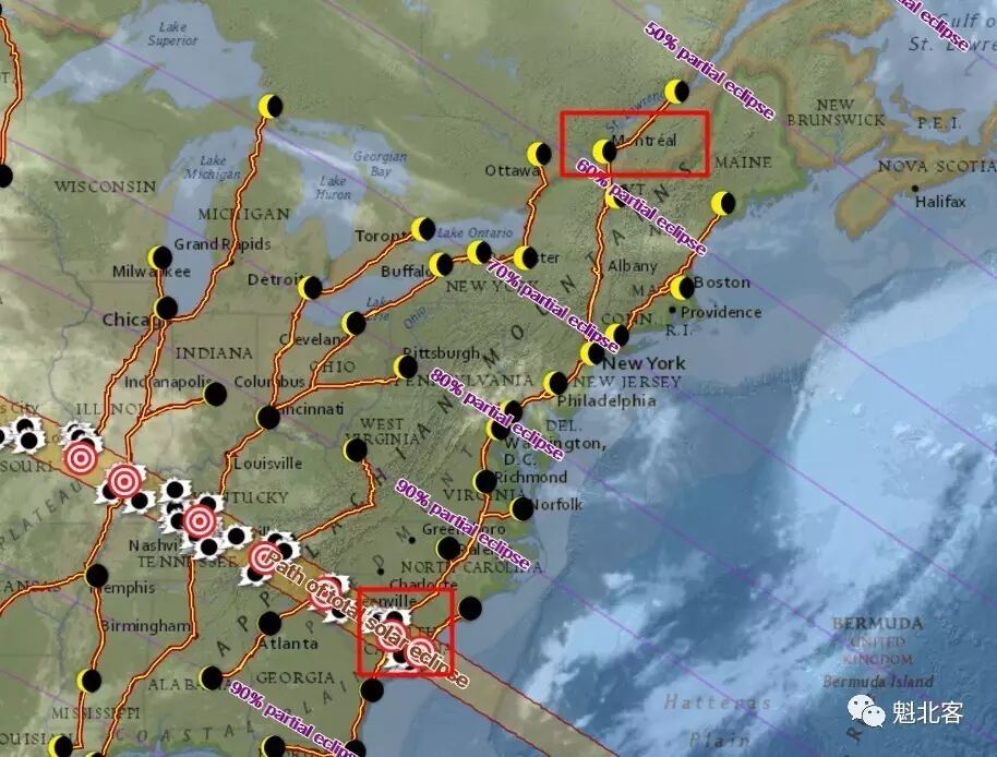 如果周末正好打算开车去美国玩,那么可以考虑直奔东岸的日全食最长地点,车程大约12-15小时。