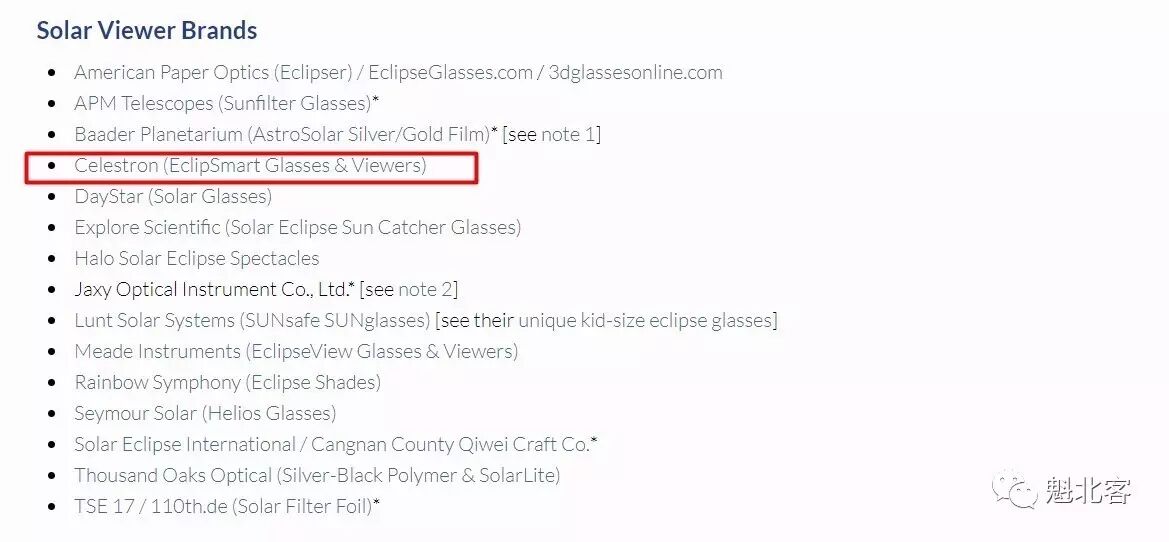 NASA给出了最可信任的日食观测眼镜品牌,具体如下: