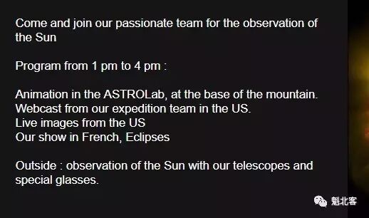 活动网址http://astrolab-parc-national-mont-megantic.org/en/activities.eclipses.htm