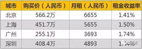 在天朝,超级城市北上广深的租金回报率是惨不忍睹的。即使帝都的月租均值已经达到了¥6655,在高房价面前的租金回报率也只有1.41%。而像厦门这样的地方,租金回报率更是低到1%,如果仅仅靠租金的话,100年才能收回购房成本,还要假设其没有贷款等其它成本。