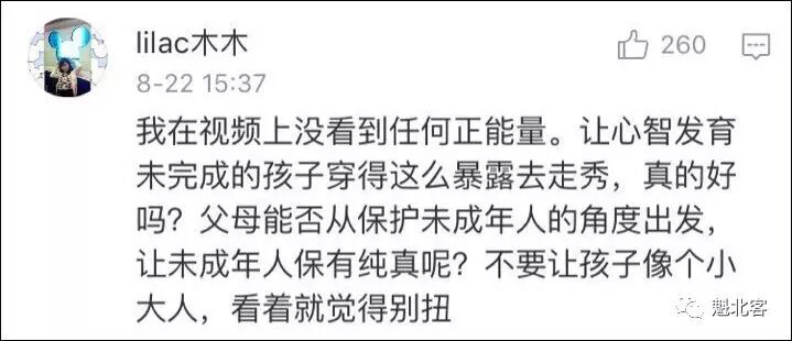 视频被传上网后,许多网友都很反感,毕竟让小孩子穿着内衣裤在公众面前走秀并不恰当。