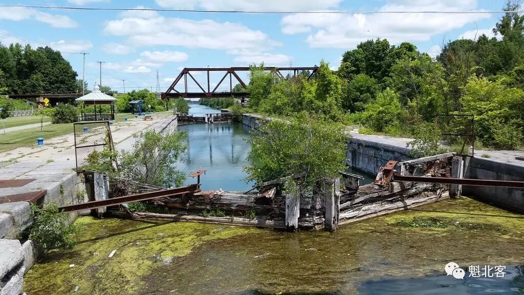 当年繁华的4号闸口,不仅可以看到军需车在码头对接的情景。大船也经过这个船闸前往五大湖运送矿石,木材和小麦。小船也在这忙碌的给当地居民输送木材、煤炭、糖蜜糖、猪肉和水泥。