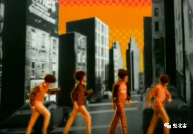 那对比鲜明的撞色背景,天马行空的情节,以及四个人头顶爆炸头一起跳集体舞的画面,真的是让人过目不忘!