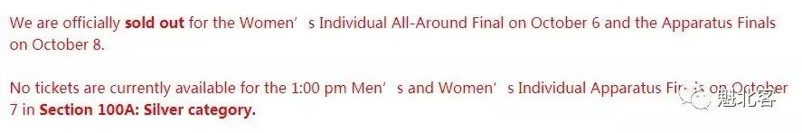 不过,这次比赛的票真的很抢手!10月6日的女子个人全能决赛以及10月8日的单项决赛都已经买不到票了!!!
