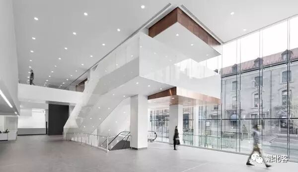 不止教堂钟楼,一段老民居的外墙,也被妥善、完美地保留在了医院的玻璃大堂之内。