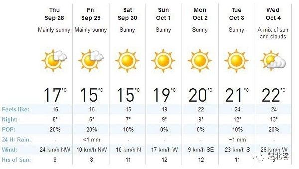 蒙特利尔的高温天气在不断创出历史纪录之后今日继续,最高30体感38,打破了2003年9月27日26.6摄氏度的温度记录。不过,今日将是今年气温在30摄氏度以上的最后一天。周四冷空气袭来,气温骤降,天气将瞬间恢复到蒙特利尔秋天应有的样子。据天气预报网,蒙特利尔今晚或将迎来9月10日以来的首次降雨(可能是雷暴),周五和周六,蒙特利尔夜间最低气温预计将低至6-7摄氏度,魁省部分地区或将出现霜冻。