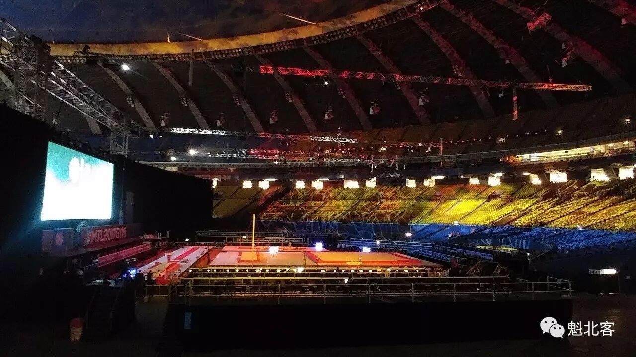 能够容纳5万6千人的场地被一份为二,一侧是训练场地,另一边是比赛场和观众席。目测现场至少可容纳25千人观看比赛。