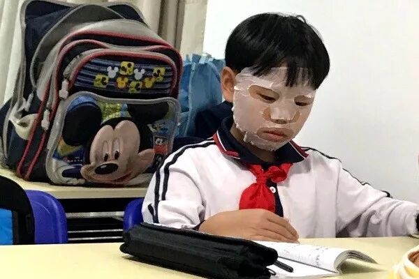 11月1日,一位敷着面膜做作业的五年级男生被其校外辅导班老师拍下照片传上网络,引发大量评论和转发。一众网友俱在这位精致的小男生面前自愧弗如:呃……是在下粗糙了……该辅导班老师说,这位小男生先是说要上厕所,回来的时候脸上淡定地敷着面膜,看见全班都在笑他,就不好意思地把面膜扯下来了。过了一会儿,他又偷偷地敷了上去。小男生说,面膜是偷拿家里妈妈的,平时妈妈不给他敷……