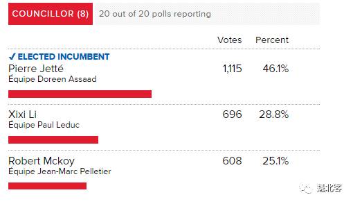 据悉,本次选举,整个南岸Brossard市的居民投票率约为36%。