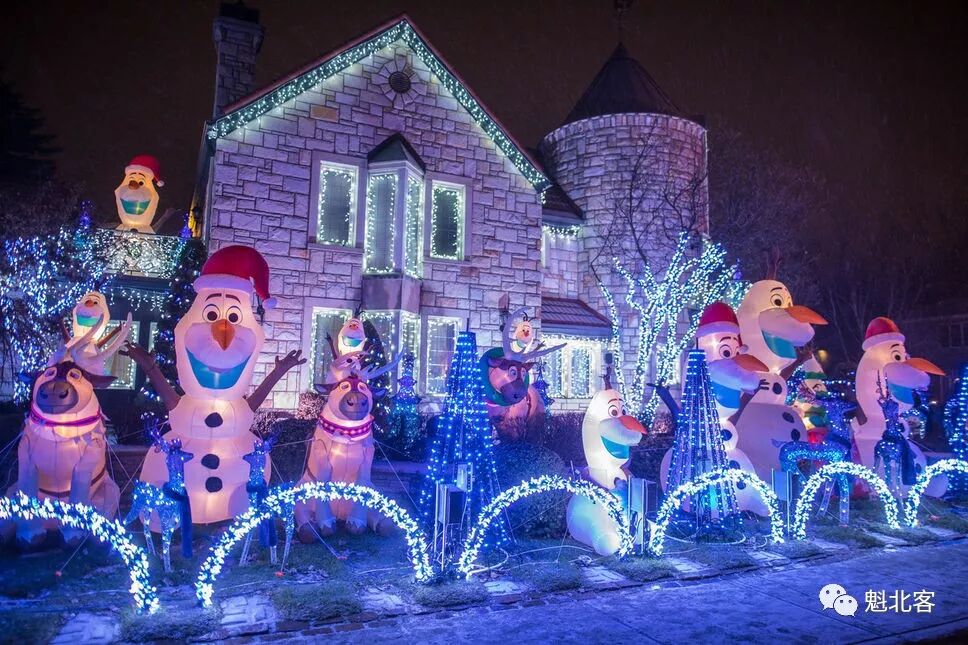 这幢位于蒙城 Ahunstic-Cartierville 区的房子,从2017年11月26日到2018年1月5日期间,每晚6点至10点,会免费上演奇妙圣诞灯光秀:10万盏灯、30个充气萌宠造型、5万加元造价……而这些,都是屋主倾一己之力完成的。