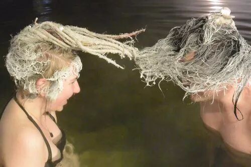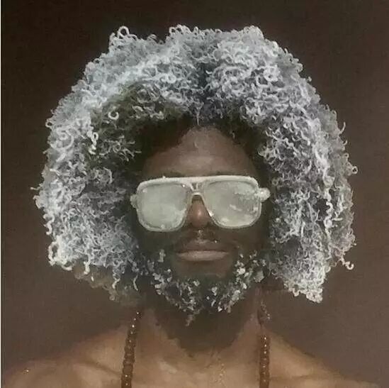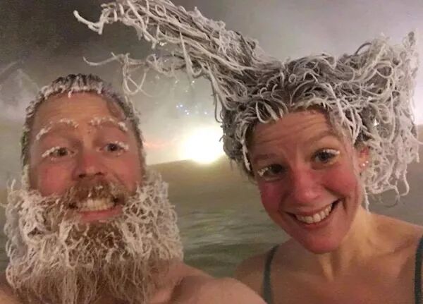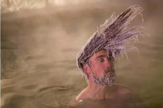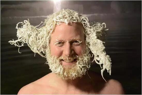 第三步:将湿头伸出水面,让毛发自行凝结,不止头发哟,你的眉毛,睫毛,鼻毛,胡子……全将被冻。