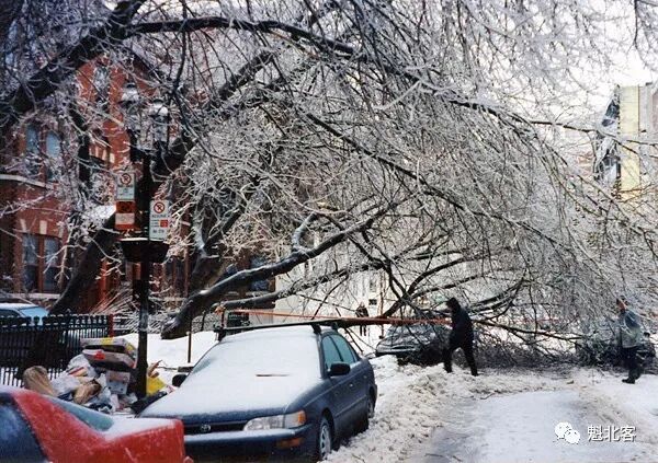 1998年1月4日,魁省南部和安省东部遭受了多达100毫米的冻雨和冰粒袭击,这场史无前例的冰暴持续了六天。当时魁省是冰灾中心,高峰期400万人断电,部分地区整整一个月没有电。加拿大至少25人被冻死,其中魁省有21人。魁北克另外三人在冰暴结束后清理屋顶积雪时发生意外死亡。这是加拿大历史上自然灾害造成人员死亡最多的一次。由于车辆被冰封,树木、树枝被冰压断,在掉落的过程中又压断了电线,造成道路被封,魁省很多人都无法前往任何地方。包括长期护理中心的老人在内,60万人被迫转移。前往有紧急备用电源的避难所或旅馆。这也是加拿大历史上和平时期最大规模的军队部署,超过15000名军人被派往魁省和安省东部参与救援行动。据估算,冰暴造成的公共设施维修、生产力损失、学校关闭、数百万人无法上班没有薪酬的总损失高达54亿加币。点击相关阅读:这些年,蒙特利尔发生的冰雪灾害盘点