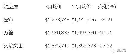 而约克区万锦市,虽然12月的均价比3月份下降了10.91%,但也低于GTA平均;