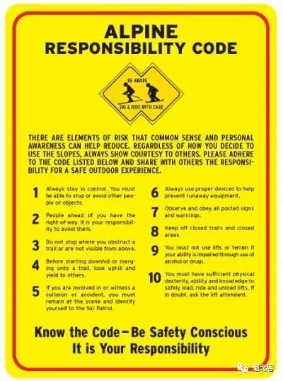 10、事故确定身份原则。事故后的滑雪者或目击者,无论是否有相关责任,都应彼此留下联系方式。