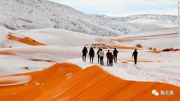 阿尔及利亚Ain Sefra小镇7日降雪,黄沙漫天变得白雪皑皑。该镇海拔约330米,地处阿尔及利亚与摩洛哥边界,更位于撒哈拉沙漠边缘,有“撒哈拉沙漠门户”之称。这是Ain Sefra40年来第3度下雪,去年降雪魁北客曾有报道,再上次的话,则要回到37年前了。官方称本次积雪不到3厘米,但无论如何,作为夏季全球最高气温的地区,就算降下一粒雪,也令人啧啧称奇。随全球气候极端化,未来沙漠雪可能会变得比较常见。据摄影者表示,该小镇一夜间变成白色,更令人兴奋的是,这雪白了一整天,直至下午5时才消失不见。