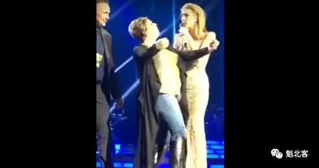 但这位醉态十足、身材微胖的女歌迷却数次“婉拒”了保安的邀请,而迪翁也未对保安们递送“快快赶其下台”的暗示眼神。