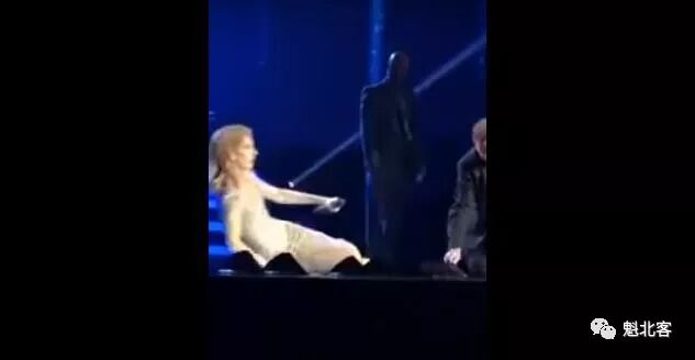 令全场观众都没有想到的是,善于搞怪的迪翁继续了她的“表演”,当她看到歌迷跌倒,她也突然仰面躺倒在舞台之上。