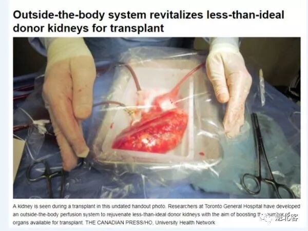 “……将待植入肾脏置于手术盘中,将温度保持在37℃人体体温水平,让这部机器透过肾脏动脉,将充氧的红血细胞,蛋白质,盐和葡萄糖的混合物泵入肾脏……”多伦多全科医院(Toronto General Hospital)移植手术医生赛尔纳表示:“最重要的一点是,要让该肾脏“认为”它仍在人体中,仍保持其在人体中的常规运作。”