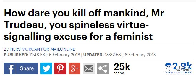 虽然,特鲁多的言论在当场赢得了不少女性参会者的掌声,但是在网络上,却遭到了国际炮轰。