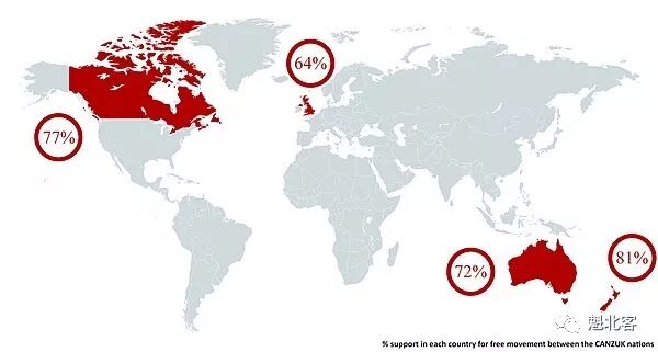 三年前,一个名叫CANZUK International的组织发起运动,呼吁加拿大,澳大利亚,新西兰和英国签订“Free Movement”协议,令四国公民可自由贸易,自由旅行,自由居留,自由打工。