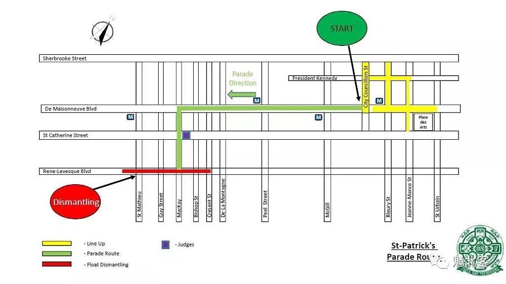 今年例外。因市政于Ste Catherine街施工,“2018蒙特利尔圣帕特里克大游行”被迫迁址,改走De Maisonneuve大街。