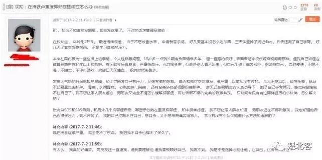 可怕的是,她在文章结尾表示“现在厌食症很严重。 完全吃不了东西。 我怕我不自杀也撑不了多久了。”有网友留言关心,但一直没得到回复。