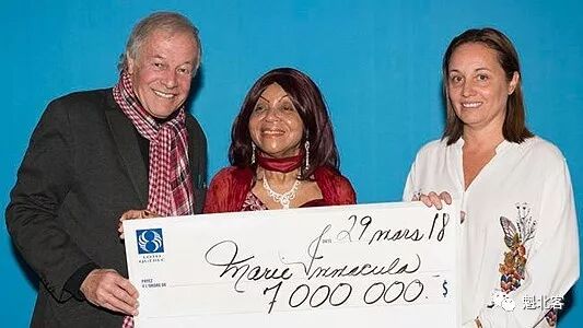 魁北克彩票公司日前终于联系到了一位中奖者,来自魁北克省Lanaudiere地区Marie Immacula Lafalaise,她赢得了3月8日开出的“Grande Vie”彩票头奖:每天1000加元!能领一辈子!然而,和前日报道“终身一周领1000的小姑娘”不同,她选择了一次性领取全部奖金700万加元。售出这张彩票的St Jean sur Richelieu市杂货店老板因此获得了70000加元的奖励。Lafalaise和家人一起于近日领走了这张大奖支票。