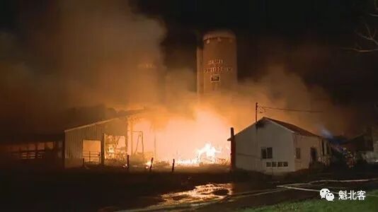 周日凌晨两点左右,蒙特利尔南岸(Monteregie)的一家奶牛场失火,数十名消防员赶到现场施救。失火原因目前正在调查。据悉,当奶牛场主一家人跑到失火牛舍为奶牛打开大门之后,顺门而入的强风致火势加快,火舌窜出牛舍,点燃了旁边的一捆干草……经粗略统计,被困在谷仓内的115头奶牛全部于火中丧命,农场的主建筑物也被大火焚毁,全部损失或达百万之巨。