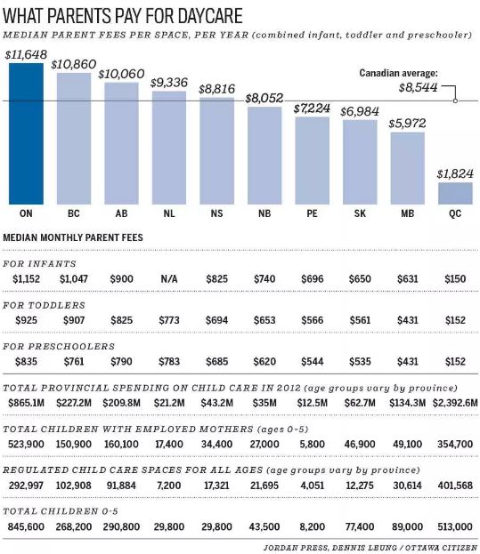 魁省大部分家长支付的日托费用,仅为加拿大其他省日托所花天文数字的零头而已!