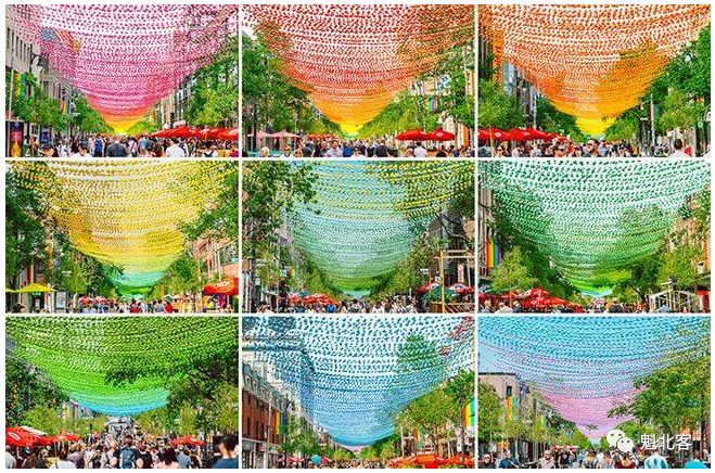 每年的5月至9月,Gay Village都会挂起十几万个彩球,不管是从远处看还是走进了看都很壮观、很美。因此,Gay Village名声远扬,不少到蒙特利尔旅游的人都会到此一看。