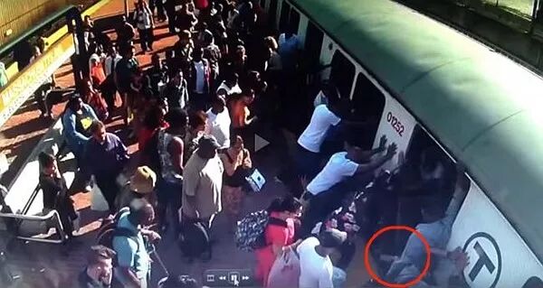 女子一条腿卡入地铁与站台的隙缝