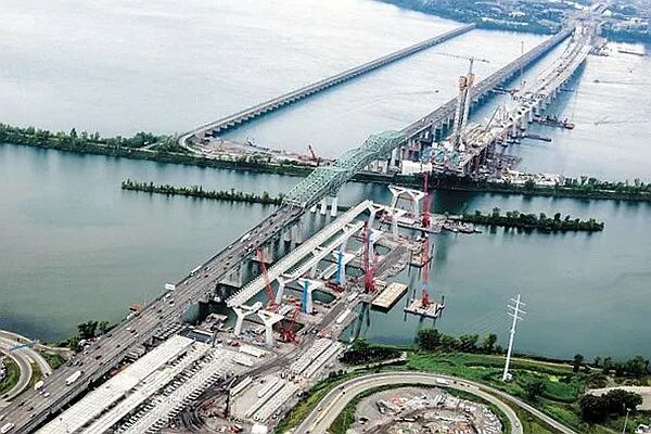 目前,Champlain大桥的建设已完成了80%以上。未来三周的施工将是这座新大桥建设中最为关键的一步:每个约重850吨、尺寸达60米×12.5米的15个巨大拱石,将被安装到大桥横跨圣劳伦斯河通船水道的正上方,也就是这座大桥最高的主跨部分。该工程完成得顺利与否,决定了这座新桥能否在今年年底前的合同期内按时完工。既要移动巨型构件,还要做到不干扰航道的商船通行,未来三周的建设工作将会进行得异常繁忙而复杂。Journal de Montreal报道,随着建筑工人假期在上周末结束,大桥上的劳动力强度将达到新桥建设史上的最高水平。