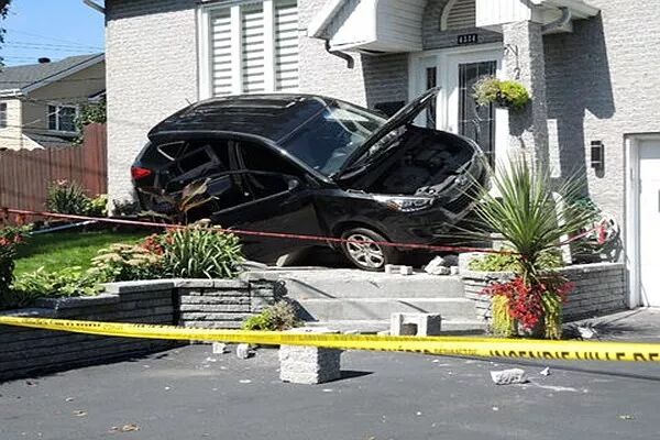 昨日上午10:35,一45岁魁北克妇女在魁北克城的驾照路试中,车辆突然失控,直冲街边一豪宅,穿树丛,爬台阶,该SUV在撞断一根门廊立柱后,横向倾斜着停在了大门的前面。事发地点位于4334, rue Michelet, Quebec City。据驾照考试单位SAAQ透露,该妇女可能是把刹车和油门给搞混了。幸无人受伤。据悉,驾车的妇女受到了惊吓,被撞房屋当时家中无人。据悉,于考场租用的“路试车”或“教练车”一般均装有副刹车系统,但在某些地方,“自己的车”也被允许参加路试,而其中的风险……恰如本文。