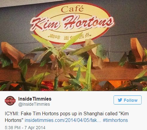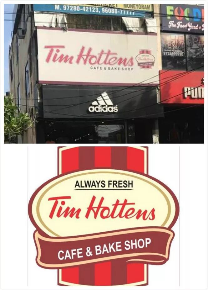 如此劣质的复刻,尽管是在印度的小城市,也足以引起正版“Tim Hortons”的注意。